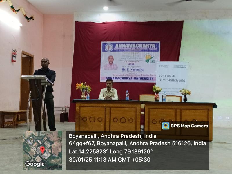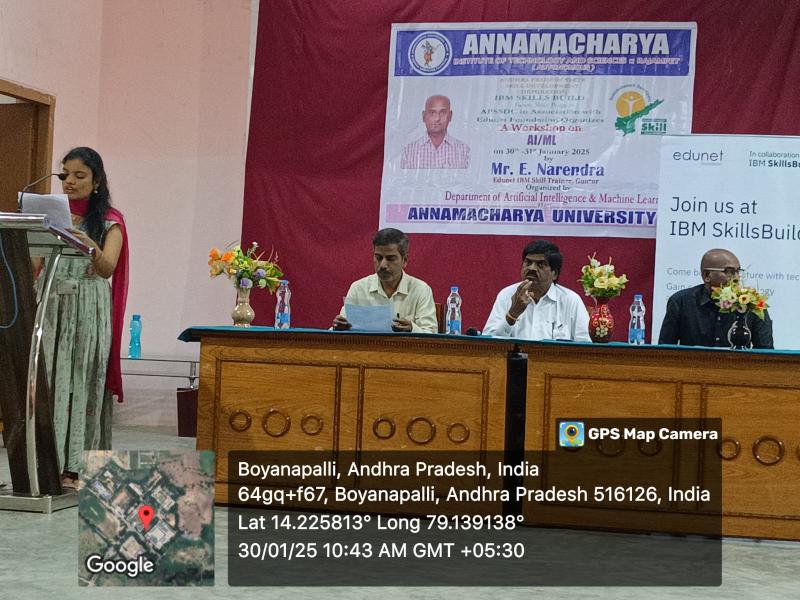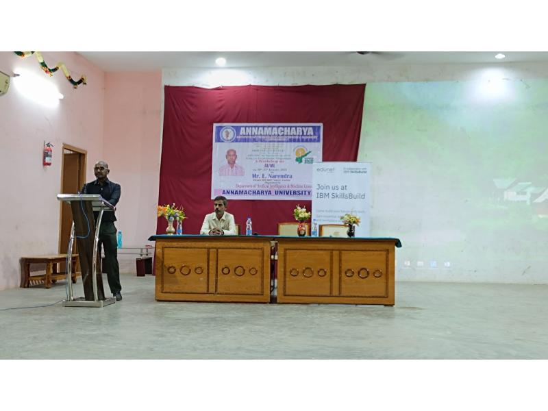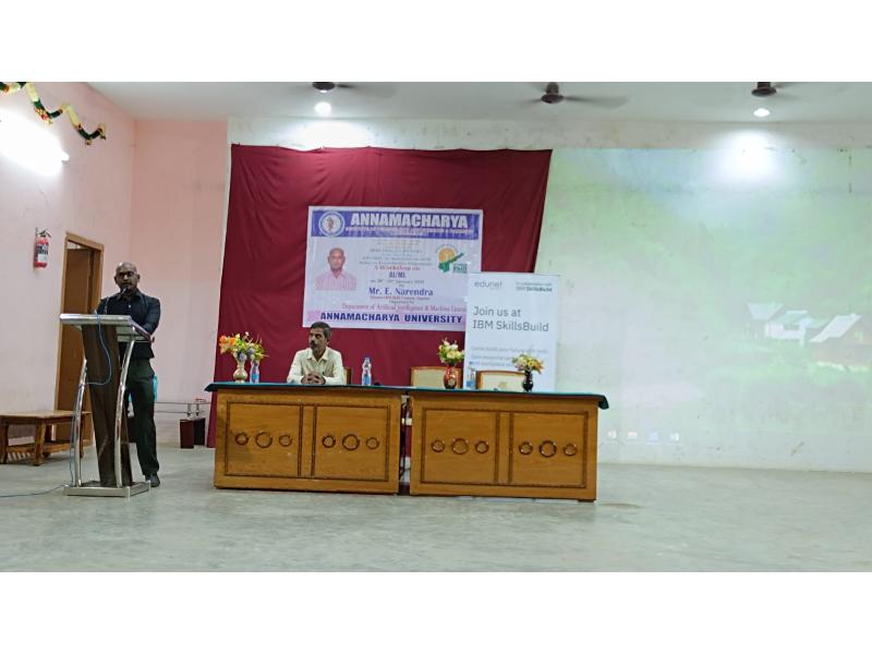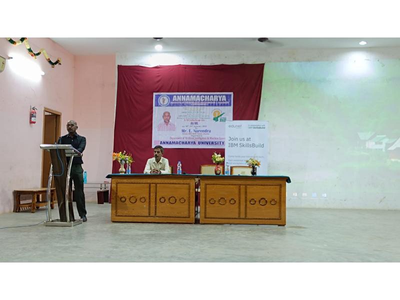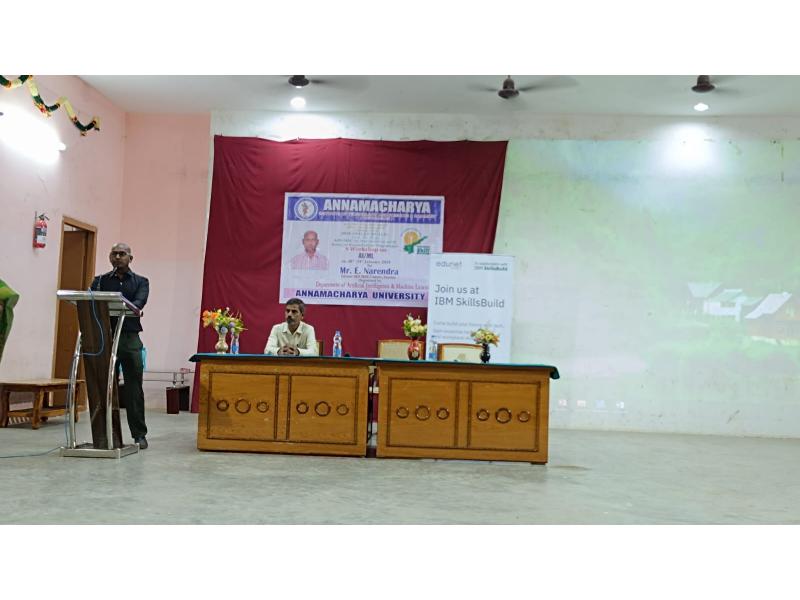 Rajampet: A two-day workshop on Artificial Intelligence and Machine Learning is being conducted at Annamacharya University for third-year B.Tech students under the joint auspices of Andhra Pradesh State Skill Development Corporation (APSSDC) and IBM. The workshop was inaugurated on Thursday, as informed by the Principal of the college, Dr. S. M. V. Narayana.