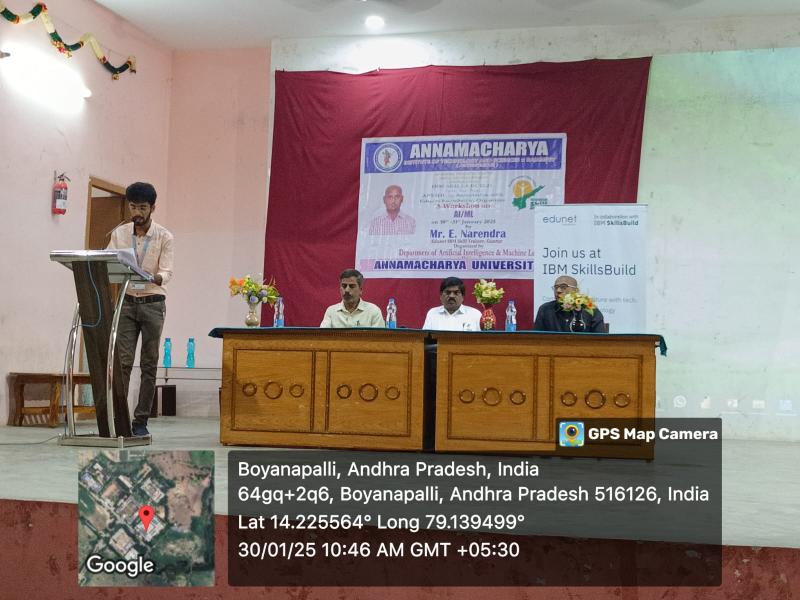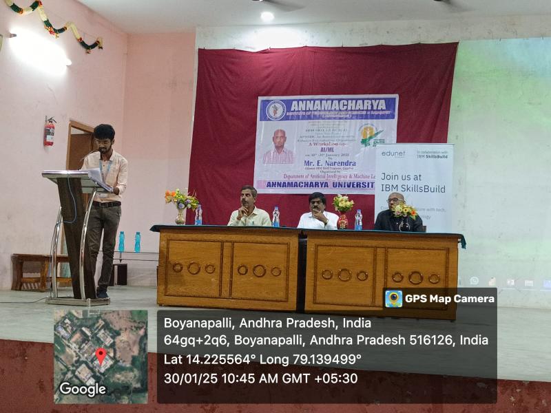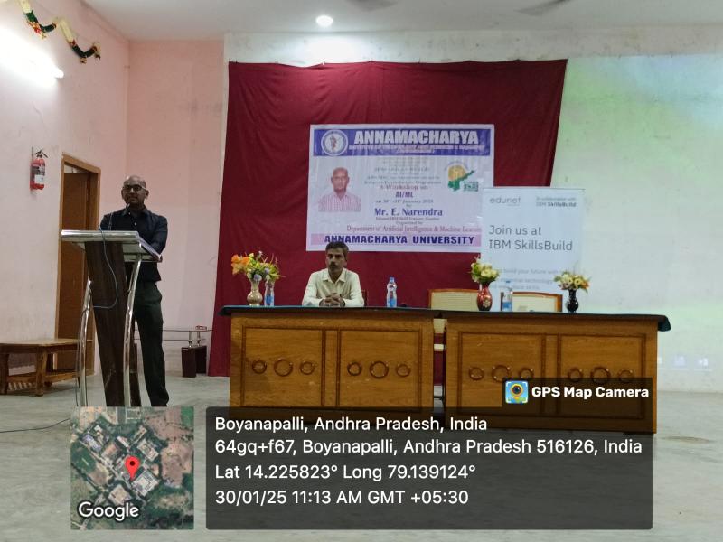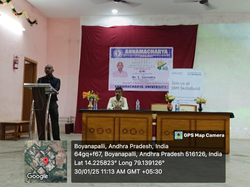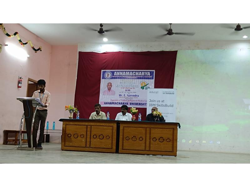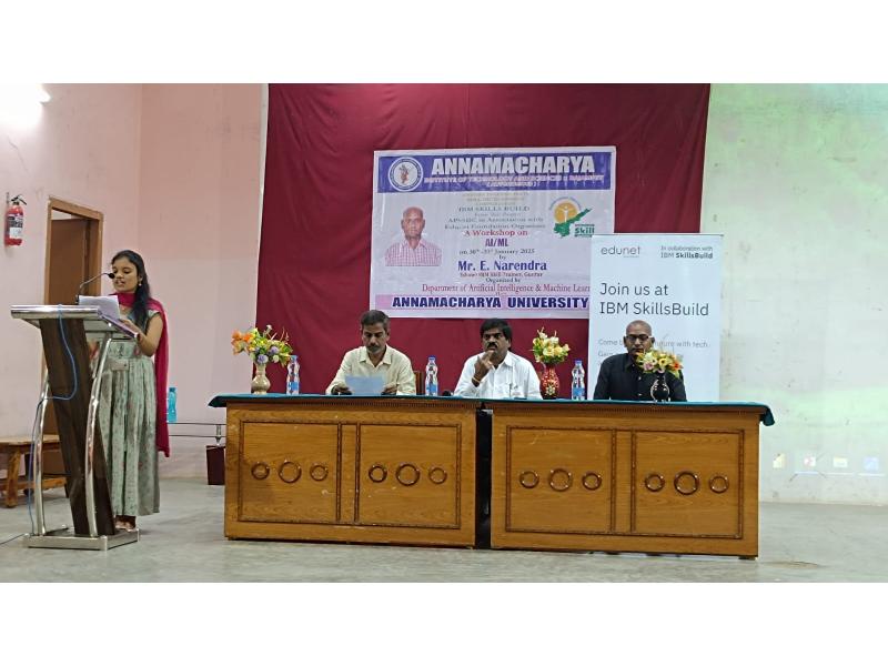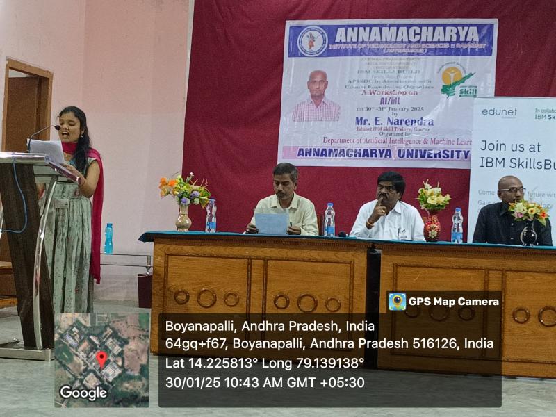 Rajampet: A two-day workshop on Artificial Intelligence and Machine Learning is being conducted at Annamacharya University for third-year B.Tech students under the joint auspices of Andhra Pradesh State Skill Development Corporation (APSSDC) and IBM. The workshop was inaugurated on Thursday, as informed by the Principal of the college, Dr. S. M. V. Narayana.