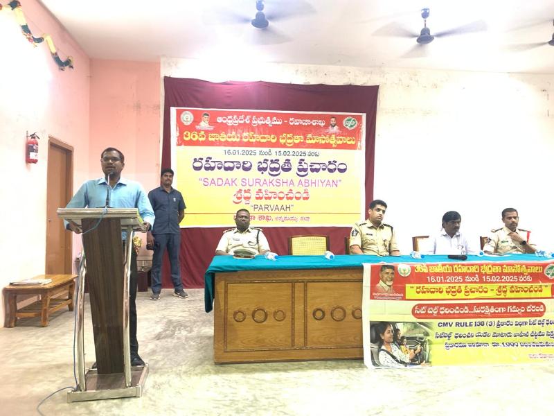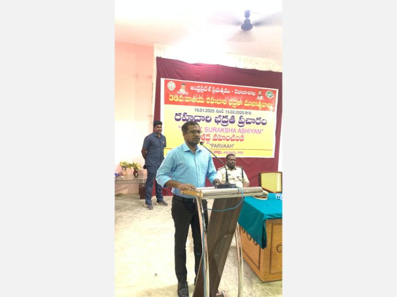 Rajampet: In an effort to reduce road accidents, the government conducts Road Safety Awareness Month every year, as stated by District Transport Officer (DTO) Mr. Prasad. On Tuesday, the 36th National Road Safety Month celebrations were organized at Annamacharya University.