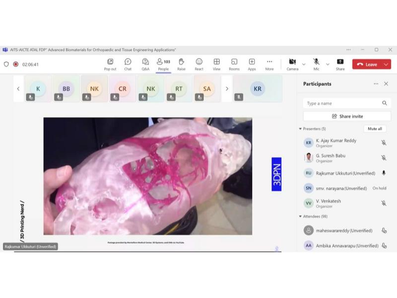 The Department of Mechanical Engineering at Annamacharya Institute of Technology and Sciences, Rajampet, inaugurated a six-day Faculty Development Programme (FDP) on 24th January 2025 at 6:00 PM through online mode. A total of 123 participants from across India took part in this programme. Sponsored by ATAL-AICTE, New Delhi, the FDP focused on advanced topics including Biomaterials, Surface Engineering, 3D Printing, Nanotechnology, and Tissue Engineering.