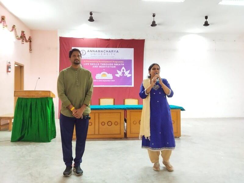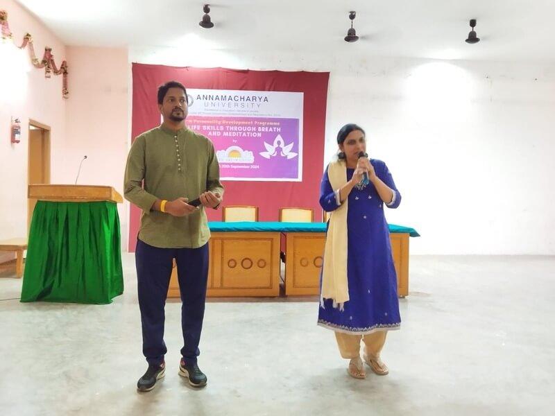 Inspired by these thoughts, a group of experts from academia and industry recently visited Annamacharya University. This program was organized to teach life skills to students through ancient Indian yoga and meditation practices. These lessons help students become more peaceful, focused, and self-disciplined.